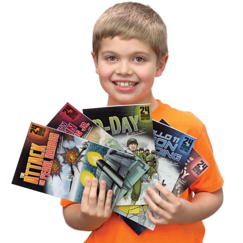 Some events in history not only unfold rapidly, but their impact can last for generations. That is the premise behind 24-Hour History, a series of beautifully illustrated graphic novels with a focused look at one critical day in US history. In each of the five novels, your child will learn key events that happened in a very short amount of time, but which still have impact today. At the back of each 24-Hour History are short biographies of some of the key characters, timelines, pertinent maps or diagrams, and a glossary. 24-Hour History will provide your reluctant reader an action-packed introduction to key historical events.
