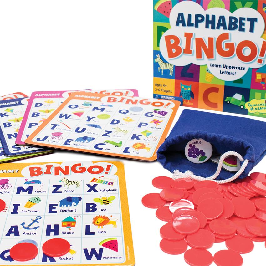 Not as elaborate as traditional bingo, Alphabet Bingo won’t burn out early learners. Alphabet Bingo is a matching game/bingo hybrid. Reach into the bag and pull out a letter token — if your child has a match, he’s on his way to winning! Very simple to set up, Alphabet Bingo is an exciting way for children to learn their uppercase letters and letter/object association.