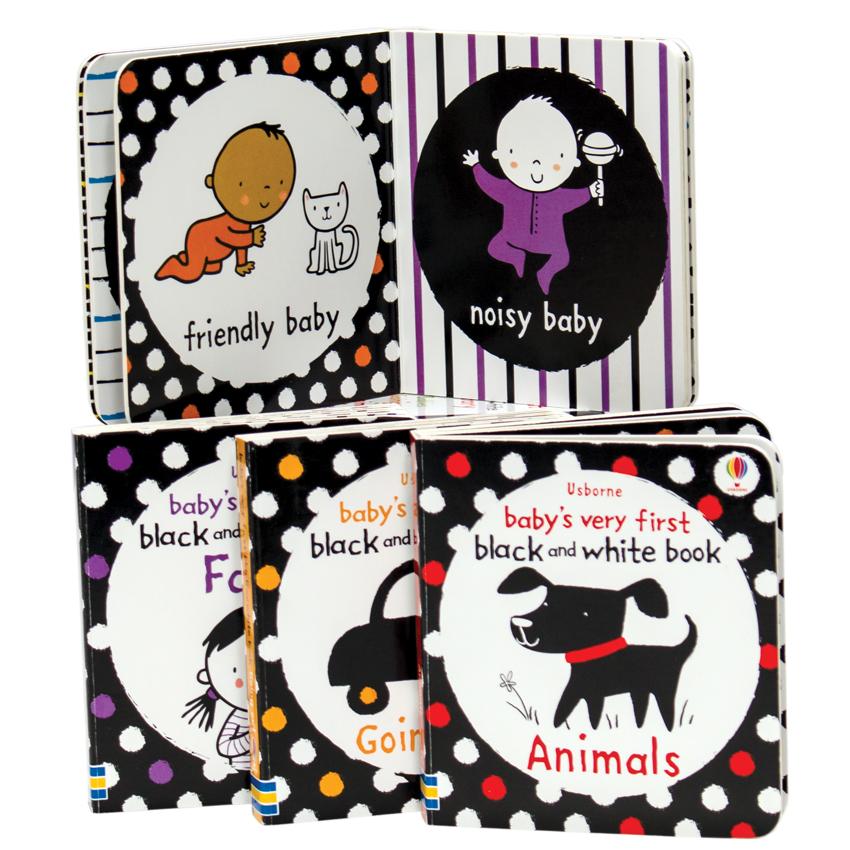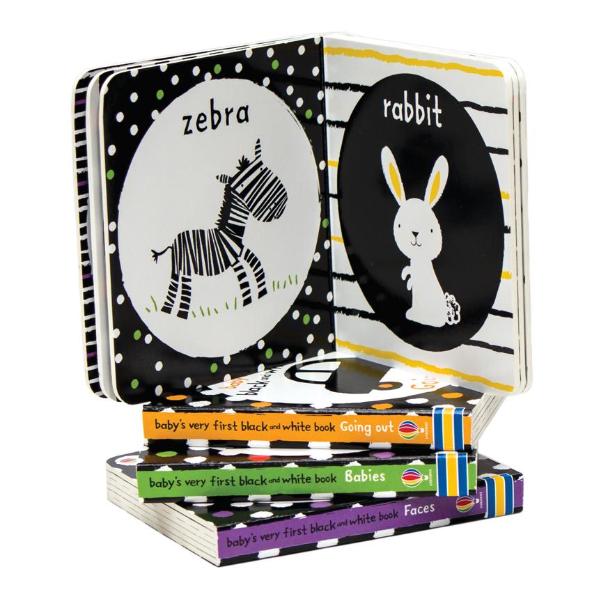 This sweet little collection of teeny-tiny board books is an excellent tool for introducing your baby to his first words. At birth, black and white images have the strongest impact on your baby, so Baby's Very First Black and White Little Library uses skillfully designed high-contrast, black-and-white illustrations, perfect for baby’s developing eyesight.