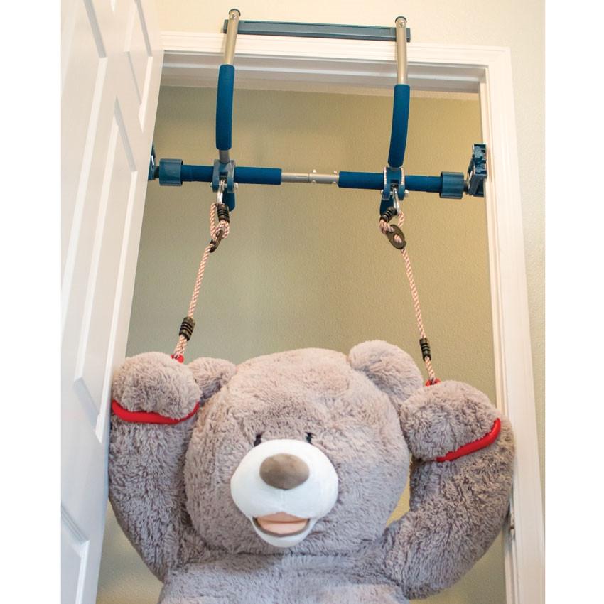 The ability to adjust the height makes it work for different ages and sizes, and the attachments can be swapped out in seconds. Plus, many of the attachments are made with heavy gauge rope to minimize indoor noise.