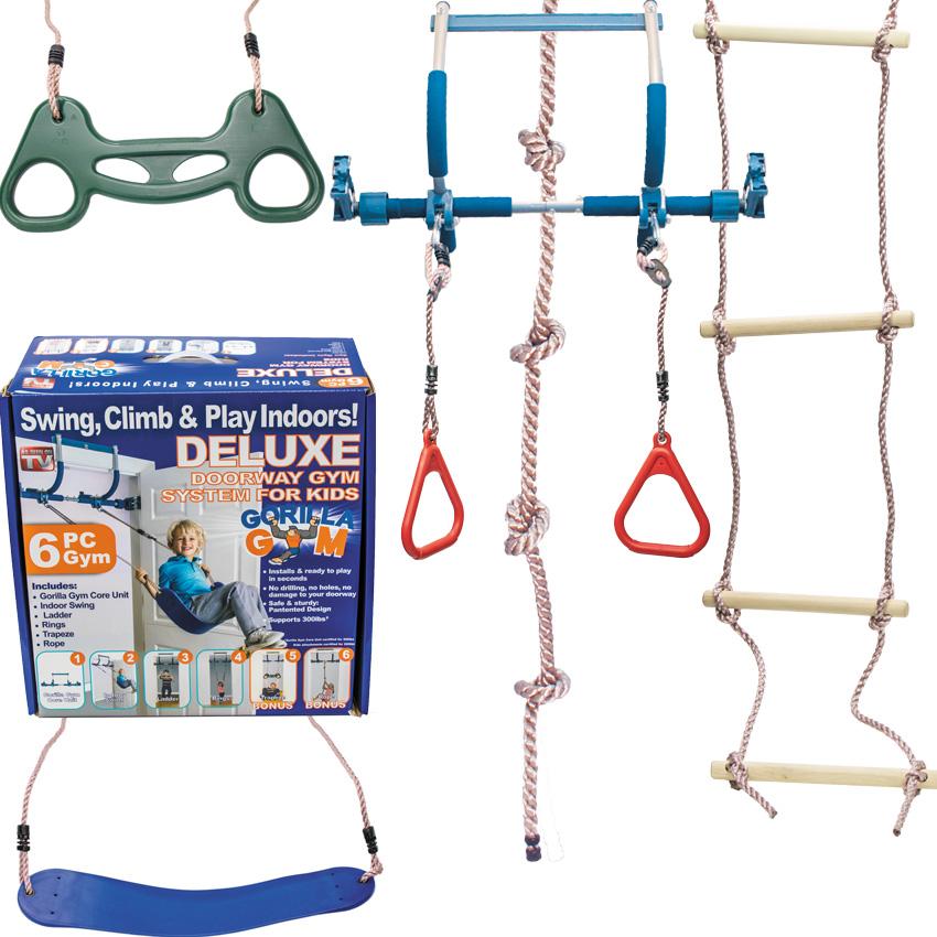 Deluxe 6-Piece Bonobo Gym Indoor Playground is lightweight, portable, and easy to install and store. It includes the core doorway unit plus an indoor swing, rings, ladder, rope, and a trapeze. Now when the weather isn’t nice or the kids can’t be supervised outside, they have a reliable way to burn off some of that excess energy.