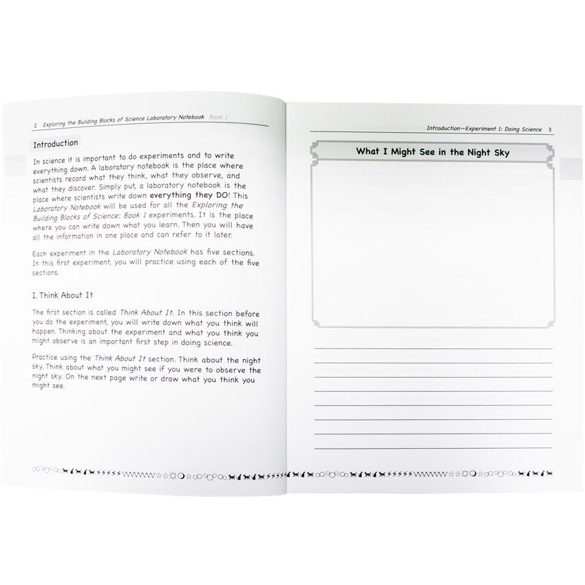 The Building Blocks Laboratory Notebook includes the 5 core science subjects (chemistry, biology, physics, geology, and astronomy) integrated into one softcover notebook.