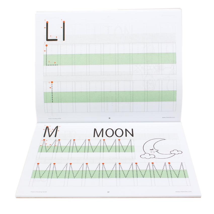 There are pictures to color, and the same image is used for both the upper and lower case letters to solidify that even though they look different, they are the same letter. The pages are fall-out-easy to remove, nice and thick, easy to erase if necessary, and the spaces are very generous and wide. Also included is practice for numbers 1-9. 80 pages.