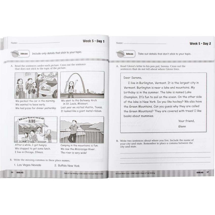 With 125 dynamic writing lessons, Daily 6-Trait Writing will provide your child practice and instruction concerning all the skills essential to becoming a competent writer. Research proves that a solid understanding of the six traits of writing improves a child's ability to write successfully, and just fifteen minutes or less a day is all it will take. Daily 6-Trait Writing is correlated to state standards for educators, with a dash of fun for our apprentice writers.
