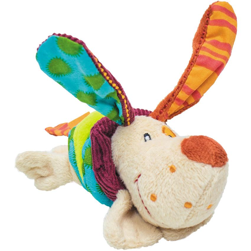 Dancing Jef Puppy is not much of a dancer, unless you consider shaking and humming to be dance moves. Nonetheless, this adorable cuddly dog is the perfect car seat companion for your little ones. Stretch Dancing Jef Puppy out, and watch him quickly shrink back to size with a delightfully-satisfying, giggle-inducing vibration. Use Jef’s handy pieces of fabric to tie him to baby’s car seat or diaper bag, or let baby use them for carrying and teething. Dancing Jef Puppy is soft and snuggly, with one corduroy ear and one super-soft ear. Provides sensory stimulation and simple cause-and-effect practice, all packed into a very cute canine.