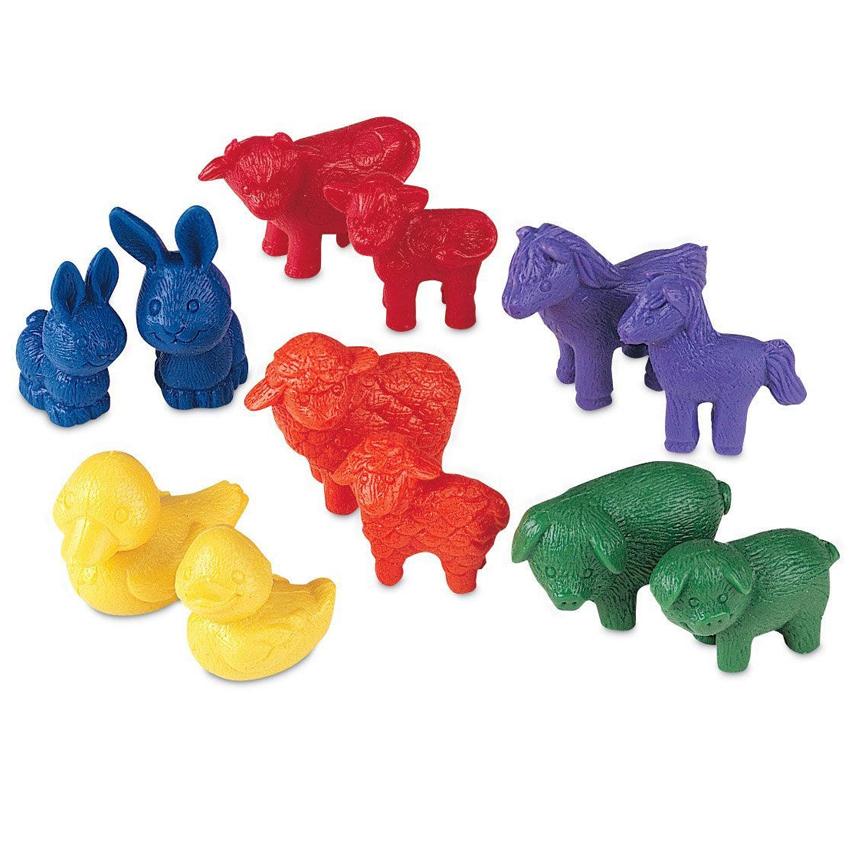 What do you get when you mix a bold, bright farm-themed play mat with 72 vibrant farm animals? A crazy-smart curriculum for introducing toddlers to the wonders of math and thinking skills! Farmland Math is 36 weeks of straightforward problems to build your toddler’s skills to think math. Concepts spiral gradually so that children do not forget as they go and include grouping by color, counting, and patterns, plus rudimentary addition and subtraction skills. Farmland Math includes a large, durable, wipe-clean foldable farmyard mat; 72 barnyard buddies in six shapes, six colors, and two sizes; and the 36-week Farmland Math guide.