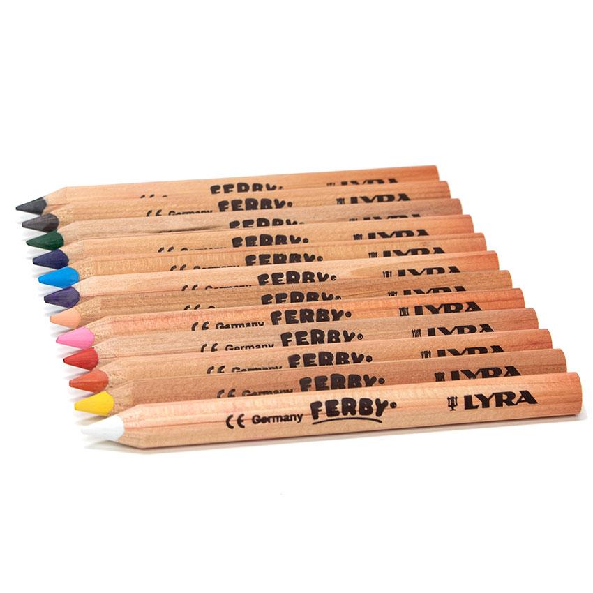Chunky and fun, the ergonomically superior Lyra Ferby colored pencils are vibrant, apply smoothly, and blend well. Lasting 3-4 times longer than standard colored pencils, so there is less frequent sharpening, the super thick, 6.25mm cores are break-resistant and made from highly-pigmented, natural waxes.