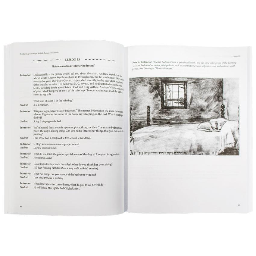 It requires very little teacher prep; just open the instruction manual, read the script, and follow directions to teach the concepts. There is no student workbook for this level, since plain or lined paper is adequate until diagramming is introduced in Level 3. First Language Lessons Level 1’s spiral learning ensures mastery for every child, important for this foundational year of language study.