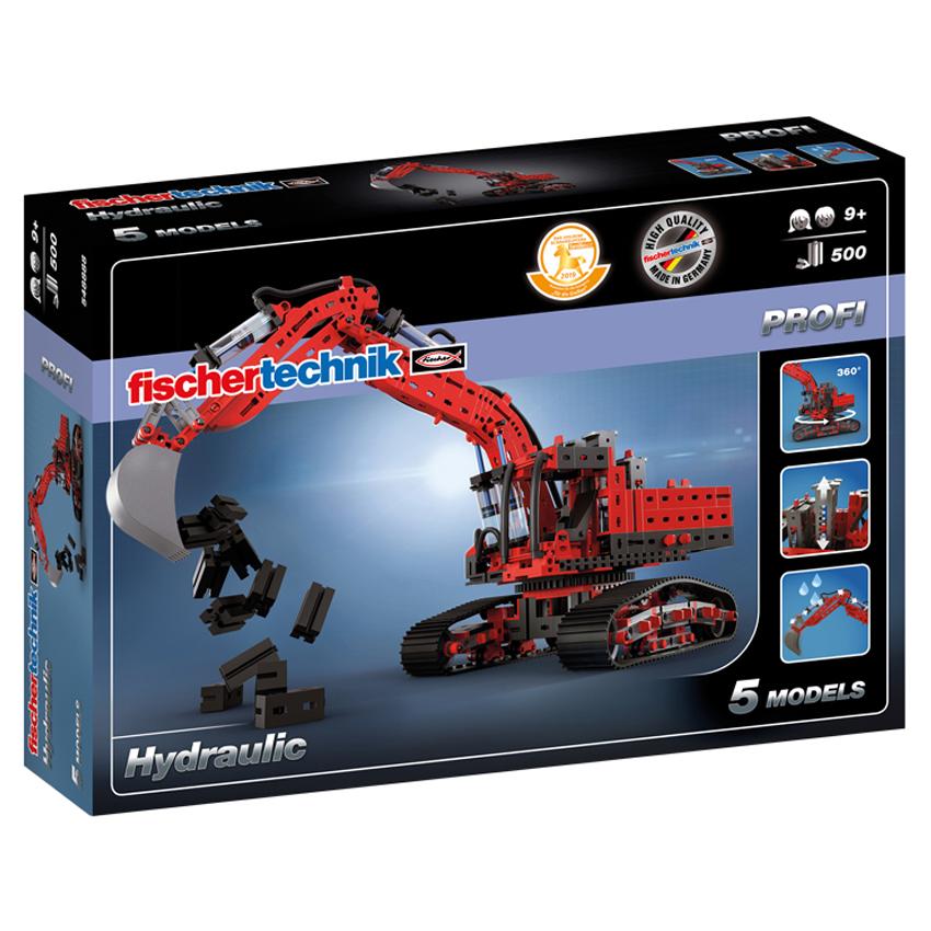 Fischertechnik Hydraulic comes with nearly 500 parts, including four hydraulic cylinders, crawler tracks, and a building manual. Includes the rare Fischertechnik action figure.