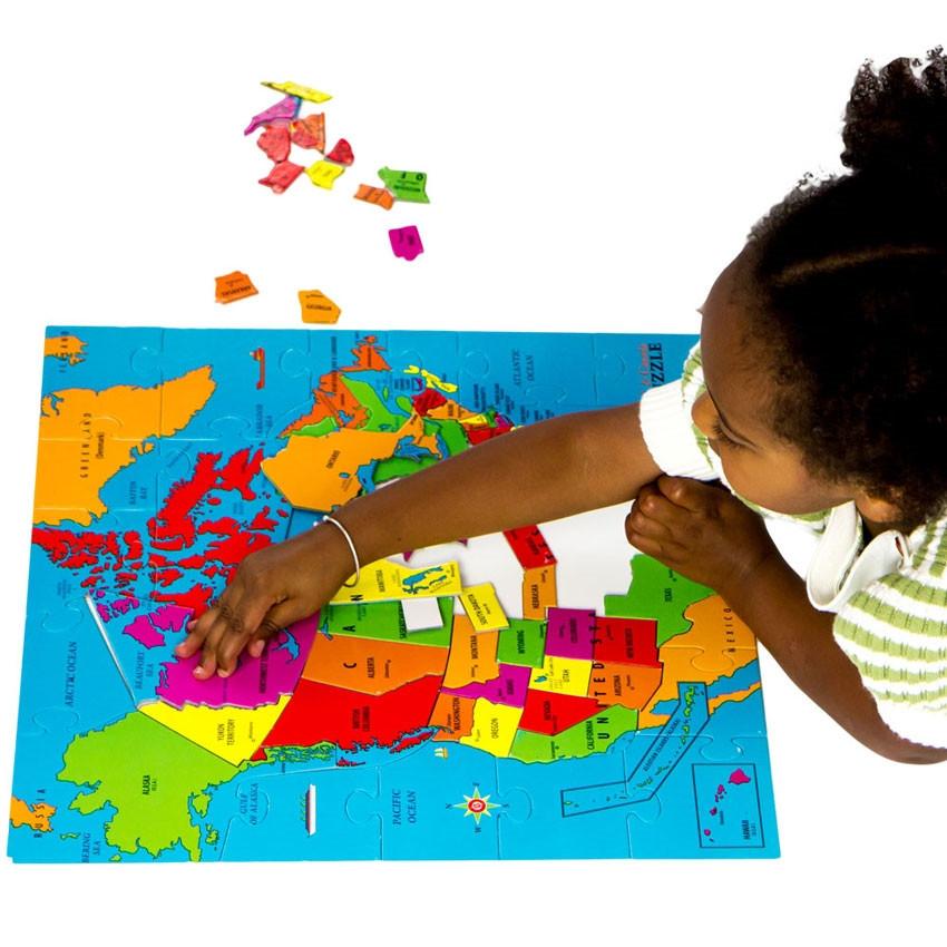 The Global Puzzle we carry is an incredible teaching tool. But why wait until your child is 10 years old to teach him geography, when children as young as four can learn with amazing accuracy the countries of Europe, Africa, Latin America, and Asia and the states of the USA, with Geopuzzles?