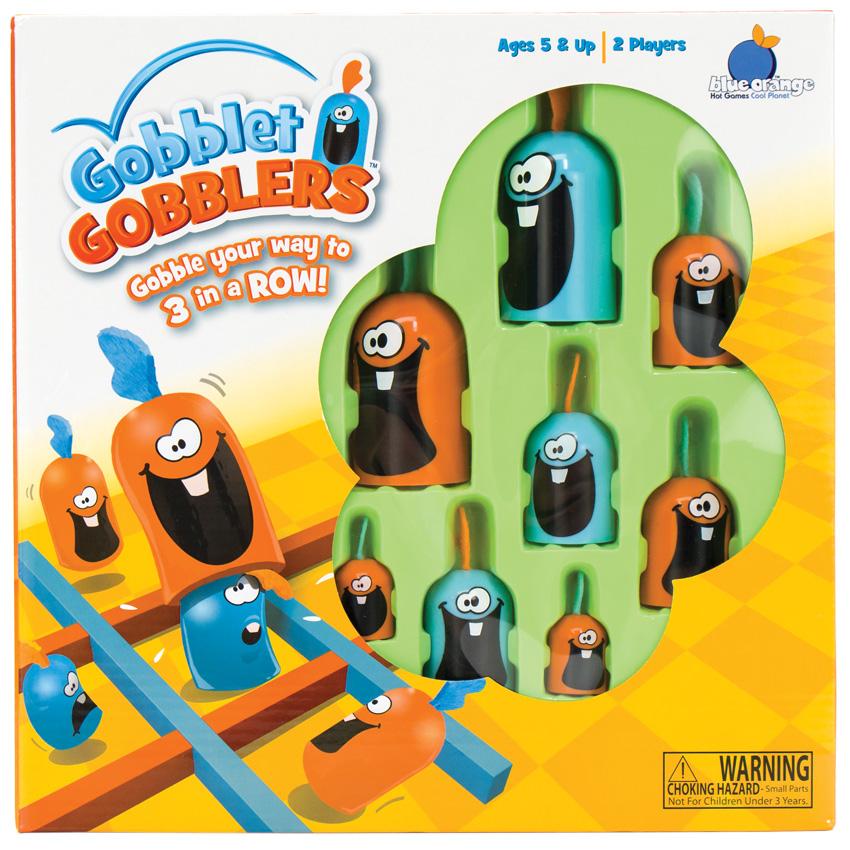 Perfect for multi-age gatherings, Gobblet Gobblers' will test your father's secret strategy, while training your children for even more complex games. Award-winning Gobblet Gobblers comes with one DIY playing grid and 12 game pieces that have plenty of personality.