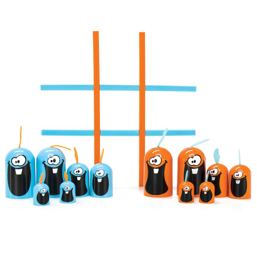 One of the first strategy games to teach children is tic-tac-toe. It is exciting to see their delight when they finally "get it," but it doesn't take long until they experience the disappointment of too many games that end in a draw. Now Gobblet Gobblers incorporates the ease of tic-tac-toe with a twist that virtually eliminates stalemates. In Gobblet Gobblers, you can move any of your pieces that are already in play, add a new piece, or gobble up an opponent's piece.