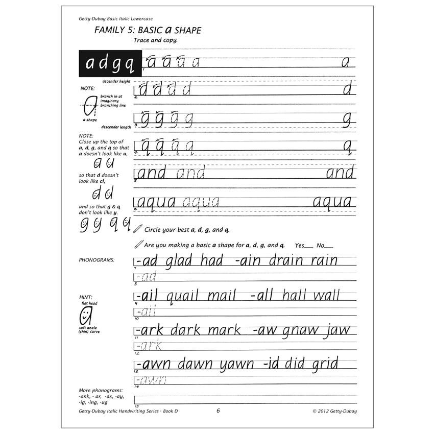 Energizing writing practice for basic italic and cursive italic includes capitalization, vowel and consonant sounds, prefixes, suffixes, phonograms, homophones, tongue twisters and six poem forms. Cursive capitals are introduced with historical development of each letter.