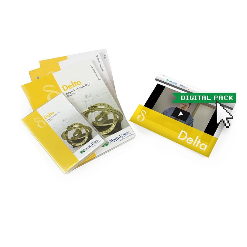 The Delta Level Up Set is geared toward families who already own the Integer Block Kit, or who are purchasing the Integer Block Kit as part of another Math-U-See level. If you are looking for a complete set, minus the massive manipulative set, this is what you want. In addition to the Instruction Pack and Student Pack, the Delta Level Up Set also includes the Delta Digital Pack with access to streaming instruction videos, instructional PDFs, and all the other online resources for the Delta level in one convenient location.
