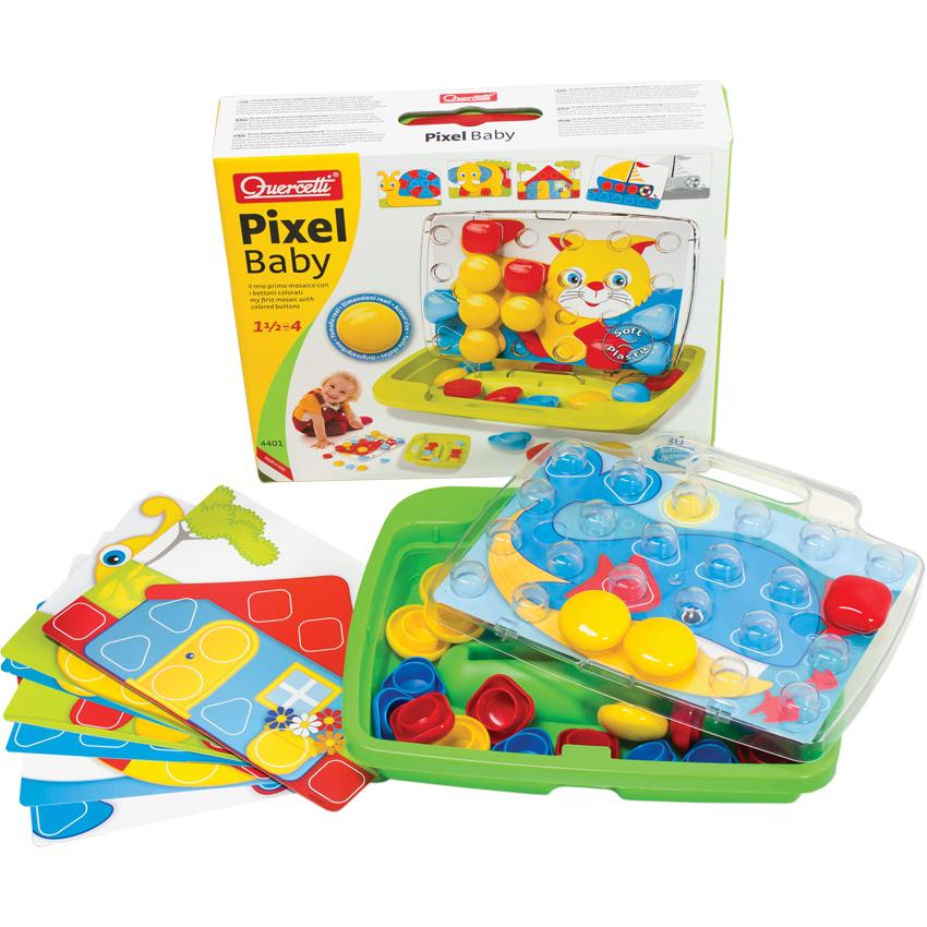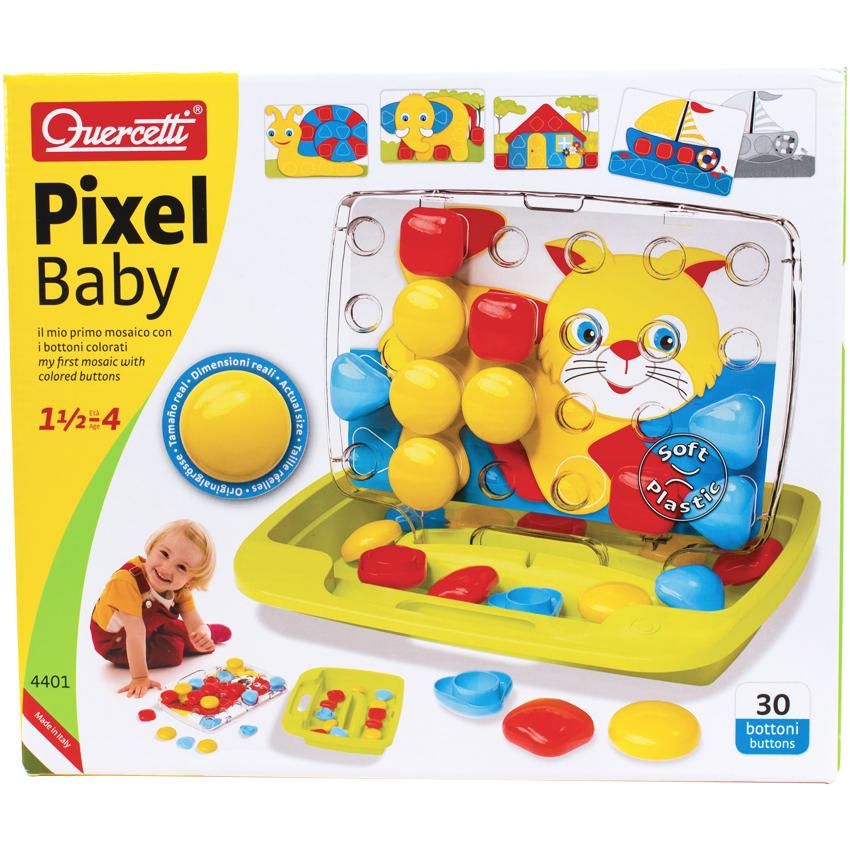 Made in Italy, the Pixel Baby case has a built-in handle, making it easy to carry around. It contains eight toddler-friendly, double-sided pattern cards and 30 extra-large buttons, all packaged into a lovely carrying case. Pixel Baby stimulates creativity, visual perception, matching, fine motor skills, and cognitive growth.