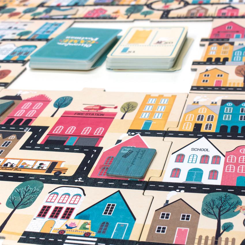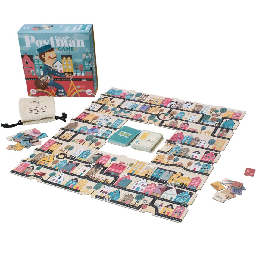 For an additional challenge, there are harder levels of play. Some cards will ask you to find one or more houses based on a description, and other cards will ask you to find a character’s home, so Postman is a multigenerational game that will grow with your family. And because you can set up the city differently every time you play, Postman stays fresh and entertaining! A beautiful game, Postman is for 2-6 players, ages 3 and up.