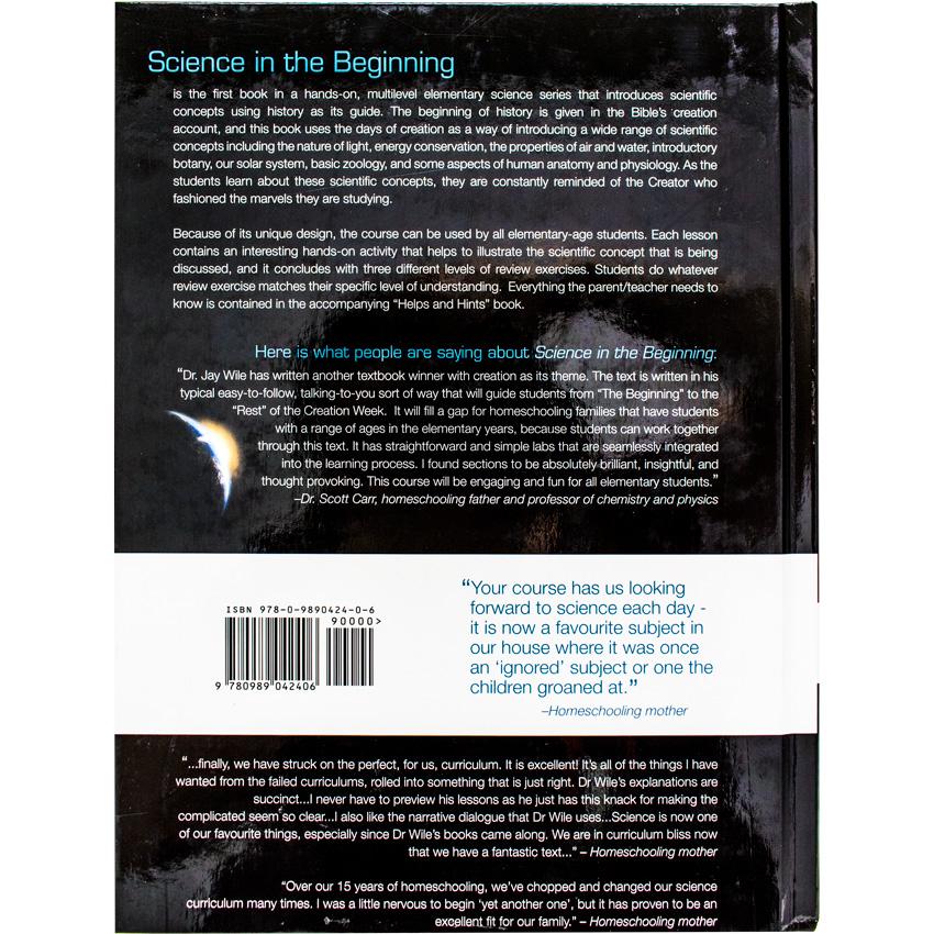 Science in the Beginning provides 15 lessons for each of the six days of creation, incorporating a vast variety of topics and experiments. These include light and eyesight in Unit 1; tornadoes in Unit 2; a crayon rock cycle in Unit 3; a toilet paper map of the solar system in Unit 4; whether saltwater or freshwater fish drink more in Unit 5; and how cats, dogs, and rabbits see differently in Unit 6. All the while, students are referred back to the Creator who fashioned all the marvels they are studying.