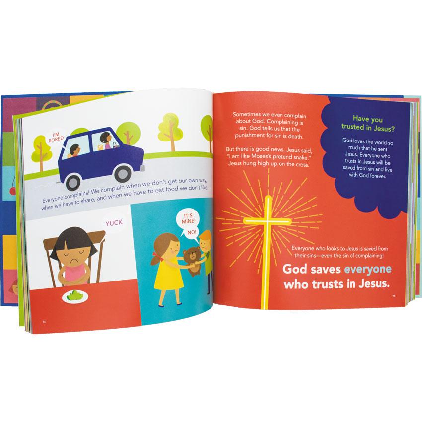 The vividly-colored illustrations provide your little ones with opportunity for fun learning such as counting, finding the opposite, looking for patterns, and more. A key truth in every story is printed extra-bold, perfect for quick reviews or reading with infants. Each of the 52 stories ends with a question that you can use to further reinforce the story. Because you don’t want your children to just understand the Bible, you want them to want the Jesus of the Bible, if you have small children in your home you will want to add The Beginner’s Gospel Story Bible to your bookshelf.