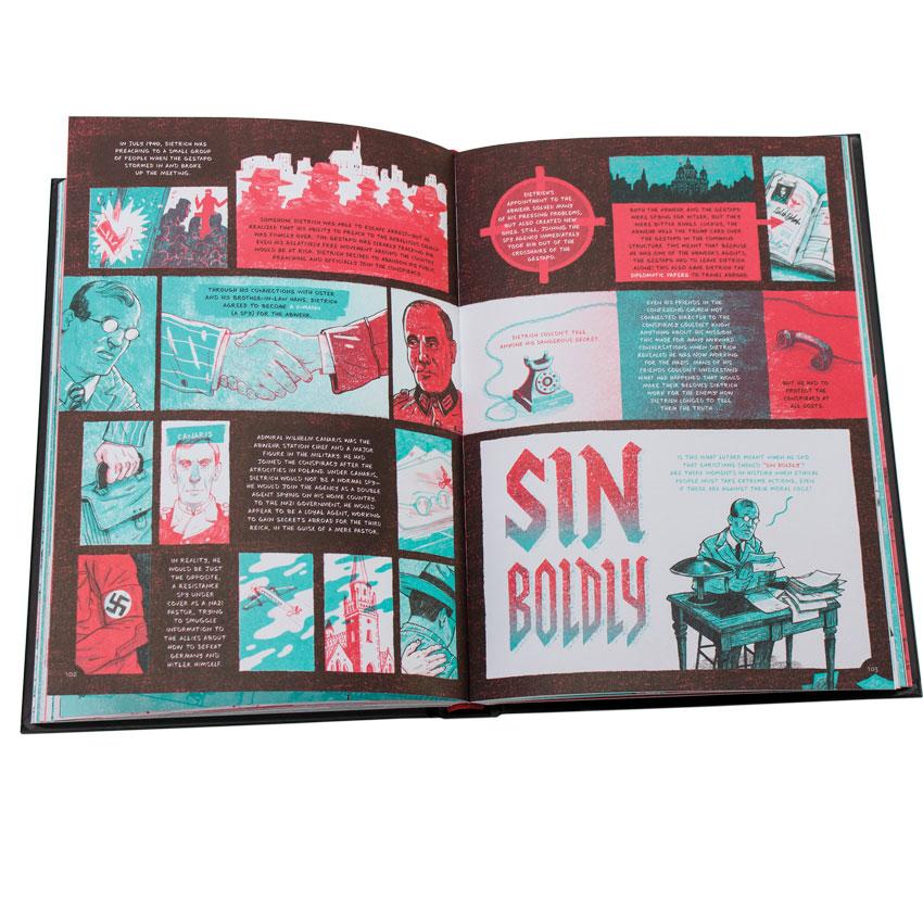The Faithful Spy is the accurate account of German pastor Dietrich Bonhoeffer, who wrestled with God’s command “Thou shall not kill” and the urgency of freeing the German people from the tyranny of Adolph Hitler. With both powerful tri-color drawings and historically accurate text, The Faithful Spy shows how this rather meek man of God could involve himself in a plot to assassinate Hitler, a decision that would ultimately cost Bonhoeffer his life. The Faithful Spy shows both Bonhoeffer’s physical and spiritual struggles alongside Hitler’s continual rise to power.