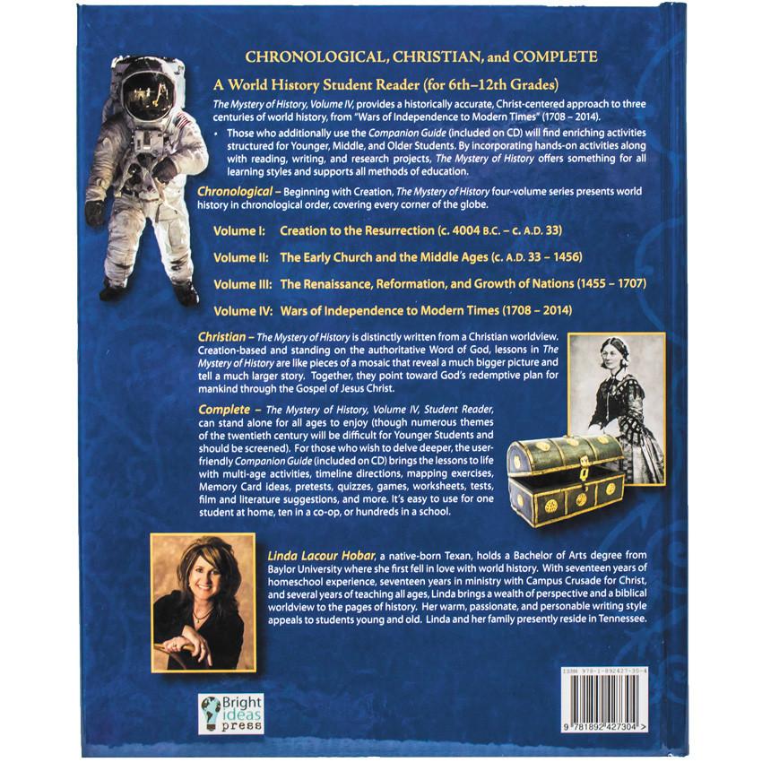 The final volume of The Mystery of History spans three weighty centuries, from 1708 to 2014. The hardcover Volume IV Reader comes with a digital download code for a Companion Guide, which provides pretests, activities, quizzes, timeline directions, mapping exercises, and literature suggestions. When your family is ready to study history in an in-depth, Bible-centered, chronological fashion, then The Mystery of History is for you.