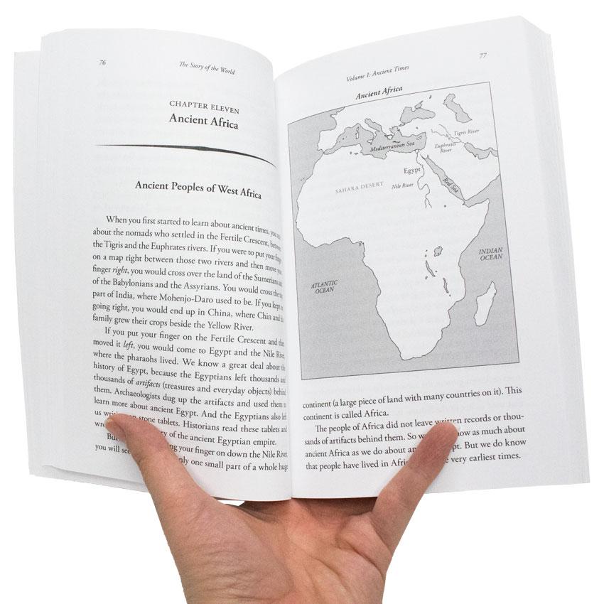 The Story of the World Volume 1 covers Ancient Times. This is the first of a four-volume series and covers the major historical events beginning with the earliest nomads and ending with the last Roman emperor (5000 BC to 400 AD). What terrible secret was buried in Shi Huangdi's tomb? Did nomads like lizard stew? What happened to Anansi the Spider in the Village of the Plantains? And how did a six-year old become the last emperor of Rome? A read-aloud history for the whole family!