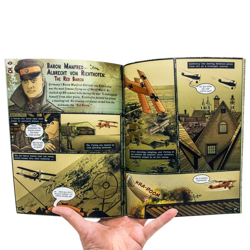 During World War I, known as the Great War, many soldiers kept journals about their experiences. True Stories of World War I encapsulates six of them, including Alvin York and the Red Baron. Your child will learn of the horror of gas warfare and the tragic sinking of the Lusitania. Written and illustrated in an engaging graphic-novel style, True Stories of the World War I also includes a brief summary of the war, a timeline, and a map.