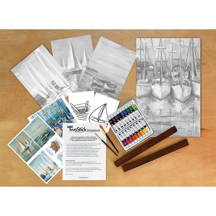When your student wants more than a paint-by-number kit but is not ready for a blank canvas, it is time for a TwoStick Shadows Paint Kit. Referred to as the training wheels for the beginning painter, TwoStick Shadows Paint Kits allow your child to experiment with paint colors and techniques. At the same time, they provide just enough guidelines to inspire confidence.