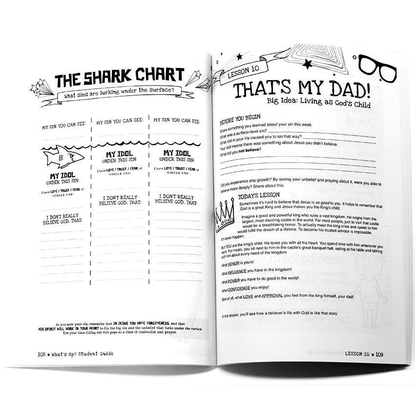 There are 15 weekly lessons, each designed to take about 90 minutes. However, in a home setting we encourage you to go at a slower pace, expanding it to 27 weeks of 45-minute lessons. This student guide offers age-appropriate activities, fun illustrations, questions to think about, and personal application activities for home. There is also a corresponding guide just for teachers/parents, filled with easy-to-understand instructions, notes, helps, and directions to make teaching the gospel to children clear and simple, available here. While specifically designed for a group, a parent willing to invest the time to prepare and, more importantly, willing to discuss answers, will fill the gap nicely. When our children reached around middle school age we had a special season of time for discipleship, and I see What’s Up? effortlessly taking that to a new level for families today.