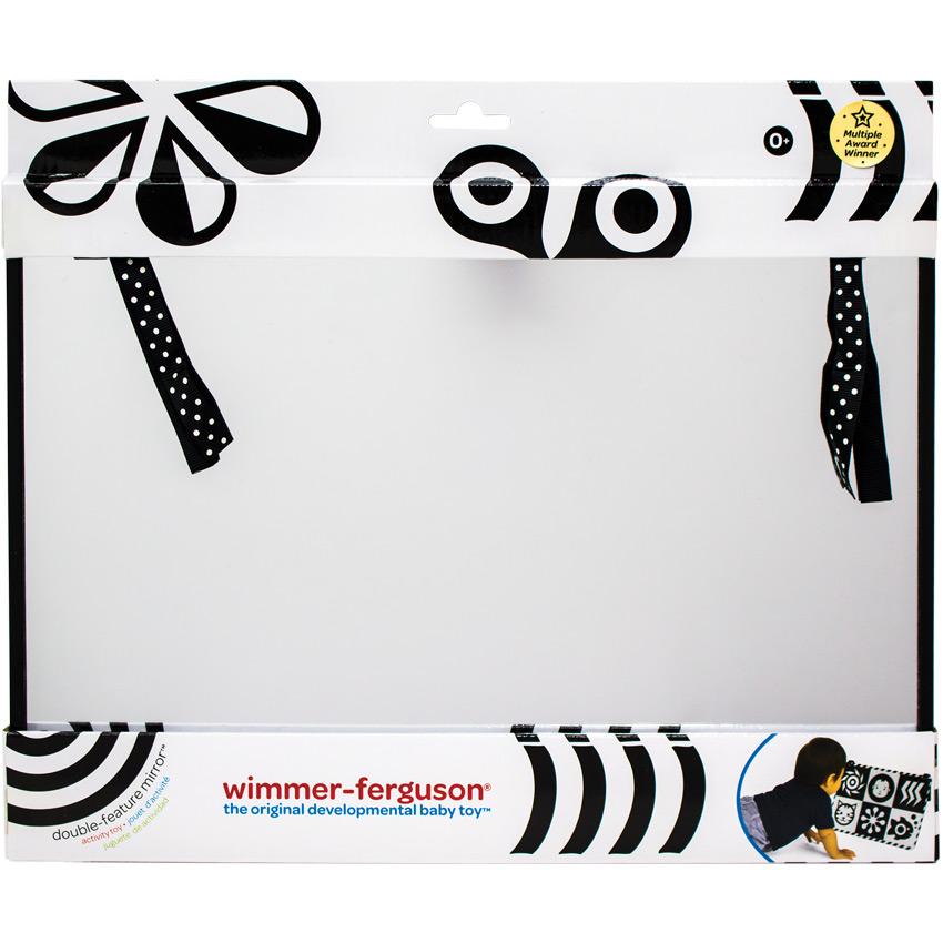 The Wimmer-Ferguson Baby Mirror is much more distortion-free than typical toy mirrors. Plus, on the reverse of the mirror are visually stimulating black and white graphics for your baby to gaze at.