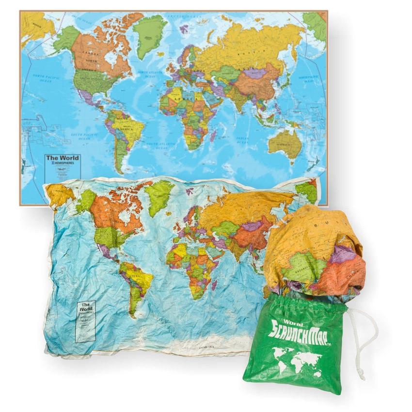 Wall maps are great, unless you want access to them in another room. Portable maps are convenient, until you need to put them away and face the complex origami of the traditional map. Now you have both convenience and portability with a ScrunchMap. Is there any easier way to fold a map than to scrunch it up into a ball and stuff it in a fist-sized bag? Printed on water- and tear-resistant material, ScrunchMaps are as kid-proof as you can get. So take your ScrunchMap out to the treehouse, down to the beach, up the mountain, and across the country; this map is designed to be a workhorse.