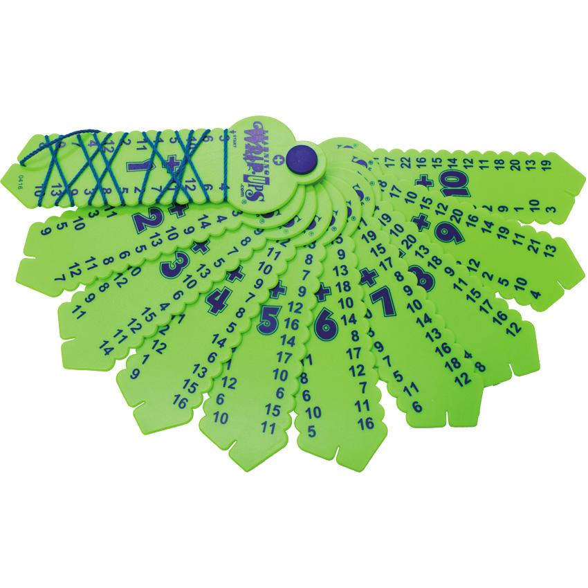Each set of Wrap-Ups contains ten self-correcting, joined-at-the-top boards (about 1 1/2” x 5”), with a colorful, attached string. The string wraps around from the problem on the left to the answer on the right. If the answers are correct, the string will cover the lines on the back of the board.