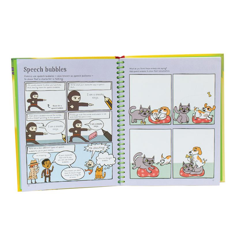 Learn how to create characters, think up story ideas, write dialog, use sound effects, and draw action and emotions with Write and Draw Your Own Comics. Creating comics is not only one of the best ways to encourage creative writing, but this technique can also be used to recount a history lesson, illustrate a scientific principle, or to explain current events. Using simple step-by-step instructions, practical tips, and handy hints this exciting activity book will show your child how to create imaginative graphic stories. The spiral-bound "lay-flat" presentation is full of brilliant advice, and even includes over 130 cartoon-style stickers for your child to add to his creations. For the child who loves to tell stories but favors the graphic over the words, Write and Draw Your Own Comics will help them develop skills that may prove to be useful for a lifetime.